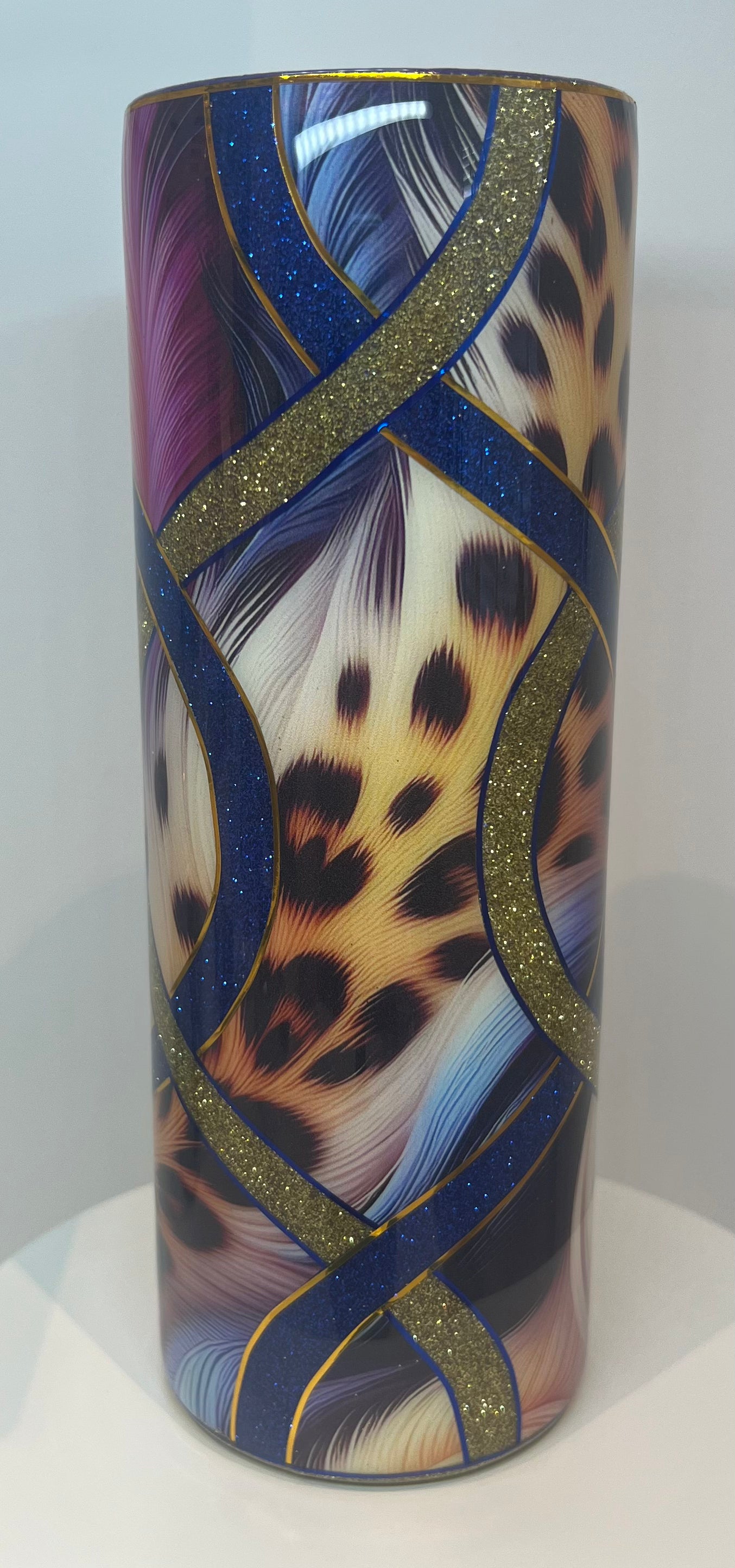 Please note that this tumbler has two slight defects, there is a slight overlap of glitter on the base into the cup design and a very small crease on a section of the burnished area which can be seen in the images, however does not effect the use of the cup. The cost of this raffle reflects these slight defects in the final price of the cup.
